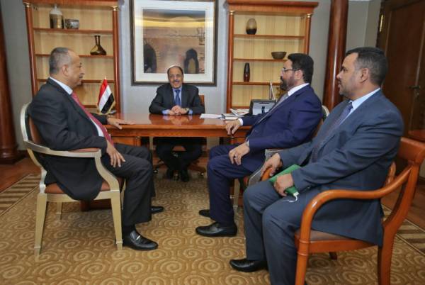 وفي اللقاء قدما محافظي مأرب وتعز شرحاً عن وضع المناطق المحررة وبعض الإشكالات القائمة.