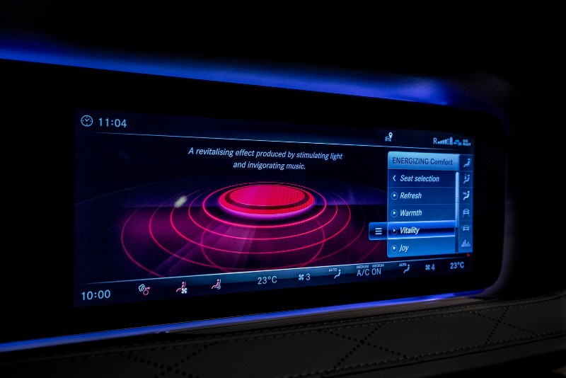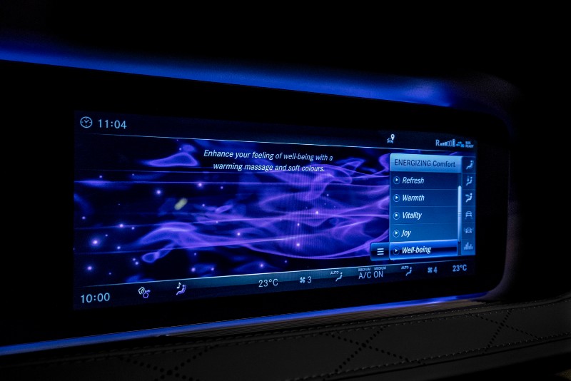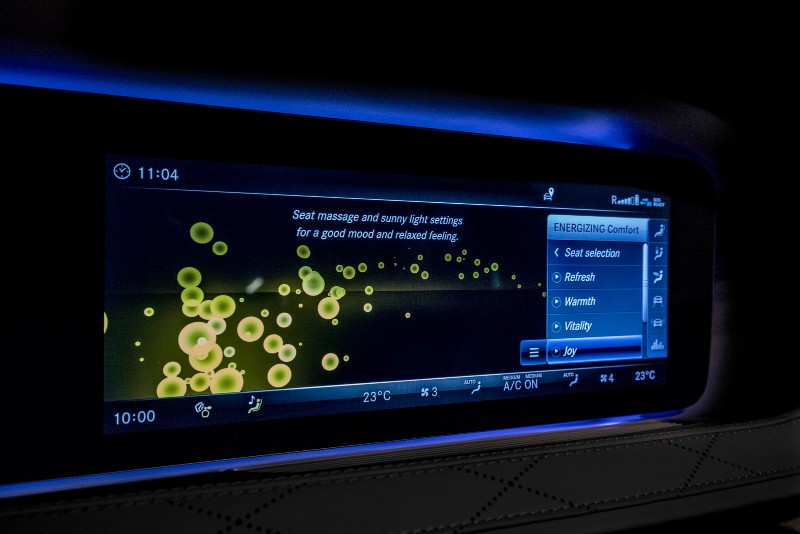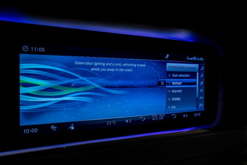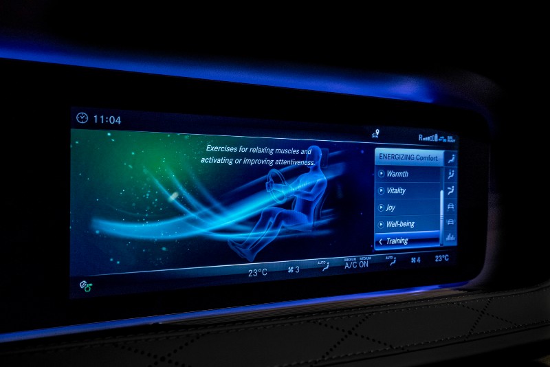 في داخلها، تتوفر 6 برامج تسعى بها مرسيدس لتعزيز الإنعاش، الدفء، الحيوية، الفرح، الراحة، التدريب، صممت هذه الوظائف لتعزيز استرخاء عضلاتك عبر تمارين بسيطة وبالتالي تنشّط عضلاتك وتُعيد التوازن لجسدك، ناهيك عن تشغيل موسيقى عذبة تنسجم معها إضاءة تروق للأعين، بالإضافة إلى أنه يتوفر تدليك بالمقعد ومكيف تهوئة بداخله، وحتى مفلترًا للهواء يطلق عطرًا طيّب الرائحة.