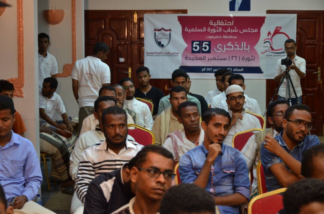 احتفى مجلس شباب الثورة السلمية بمحافظة حضرموت، اليوم الثلاثاء بمدينة المكلا، بالذكرى الـ 55 لثورة 26 سبتمبر المجيدة.