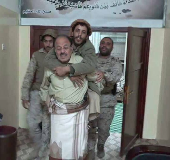 وقالت مصادر اعلامية وعسكرية متطابقة ” أن الفريق علي محسن الاحمر قام بحمل الجندي جميل الحنيشي على كتفيه ، بعد أن بترت قدميه خلال معارك سابقة بجبهة نهم” .