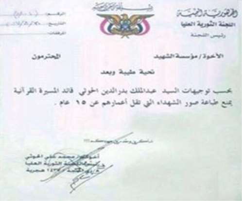 وأكد المصدر، أن التوجيهات شملت التعميم داخل ما يعرف بمؤسسة الشهداء في صنعاء، بمنع تداول أو لصق صور الأطفال المقتولين في الجبهات، في الساحات العامة أو في المؤسسة ذاتها، إلى جانب إزالة جميع الصور التي عُلقت في الشوارع مسبقا.