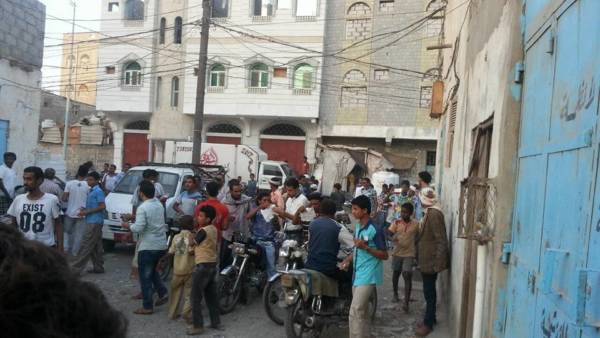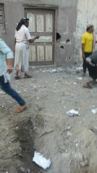 ونشر الصحفي بسيم الجناني، صوراً يظهر فيها تجمهر ابناء احد الاحياء السكنية بشارع جمال وسط مدينة وهم يجمعون المنشورات التي تساقطت من طائرات التحالف.
