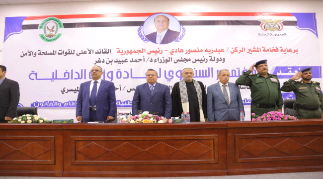وأضاف رئيس الوزراء خلال عقد المؤتمر السنوي لقادة وزارة الداخلية برعاية كريمة من رئيس الجمهورية “، لنسعى لسلام دائم في عدن، وأمن دائم في عدن، فهي واجهتنا للعالم، السلام والأمن أولاً، والسلام والأمن ثانياً، والسلام والأمن دائماً.