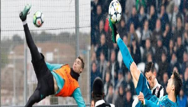 رونالدو يسجل من دبل كيك رائع فى مران ريال مدريد على طريقة يوفنتوس