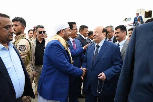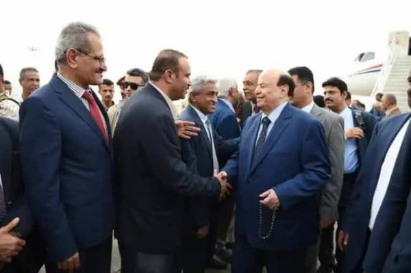 وصل رئيس الجمهورية اليمنية عبدربه منصور هادي مساء الْيَوْم الخميس الى العاصمة المؤقتة عدن لمشاركة ابنائها الاحتفال بعيد الفطر المبارك والإشراف على سير العمليات العسكرية التي ينفذها الجيش الوطني والمقاومة الشعبية وبدعم واسناد من قوات التحالف العربي بقيادة المملكة العربية السعودية لتحرير محافظة الحديدة لزرع البسمة والطمأنينة على وجوه ابنائها على طريق تحرير وتطهير ما تبقى من مناطق اليمن من عبث ميليشيا الحوثي الانقلابية المدعومة من ايران.