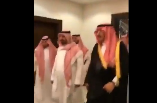 ويظهر الأمير محمد بن نايف في الفيديو المنشور ايضاً على صفحات موقع تويتر أثناء دخوله لمجلس العزاء، يوم الجمعة، وإلقاء التحية على الحاضرين في صالة استقبال كبيرة.