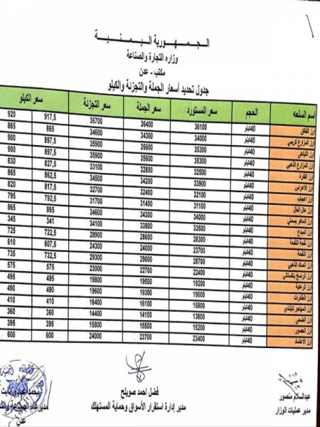 ونوه مصدر في مكتب وزارة التجارة والصناعة بالعاصمة اليمنية المؤقتة عدن ” إن الأسعار الواردة في القوائم خاضعة للتعديل” .