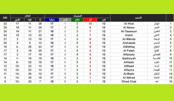 ورغم خسارته على ملعبه احتفظ الهلال بالصدارة برصيد 32 بينما تقدم الحزم للمركز 11 برصيد 14 نقطة.