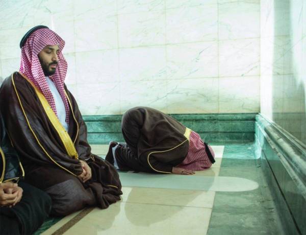 وطاف بن سلمان حول الكعبة المشرفة، كما صعد إلى سطحها بعد طوافه والصلاة بداخلها.