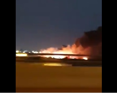 ونشر احد المغردين من السعودية على موقع تويتر، قيديو للنيران المشتعلة، قال انه قام بتصويره من مسافة بعيدة من على كبري الميناء.