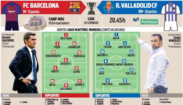 وقالت صحيفة ”أس“ أن فالفيردي سيشرك بواتينغ في مركز الهجوم على حساب لويس سواريز، إلى جانب ليونيل ميسي وعثمان ديمبلي.