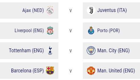 نتيجة قرعة مباريات نصف نهائي دوري ابطال اوروبا 2019: