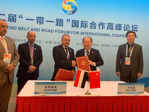 وقع وزير الصناعة والتجارة الدكتور محمد الميتمي اليوم مع نائب رئيس اللجنة الوطنية للإصلاح والتنمية الصيني مي نينج، على مذكرة تفاهم لانضمام اليمن لطريق الحرير.