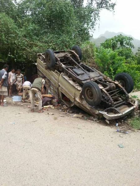 بسبب الضباب وانعدام الرؤية بمديرية الجبين محافظة ريمة يوم امس الاثنين حادث انقلاب سيارة شاص واصابة خمسة افراد كانوا متنها اثنان اصابتهم خطيرة.
