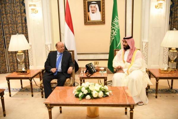 التقى فخامة الرئيس عبدربه منصور هادي رئيس الجمهورية مساء الأحد ولي العهد نائب رئيس مجلس الوزراء وزير الدفاع بالمملكة العربية السعودية الشقيقة صاحب السمو الملكي الأمير محمد بن سلمان بن عبدالعزيز آل سعود بحضور نائب رئيس الجمهورية الفريق الركن علي محسن صالح ورئيس مجلس الوزراء الدكتور معين عبدالملك.