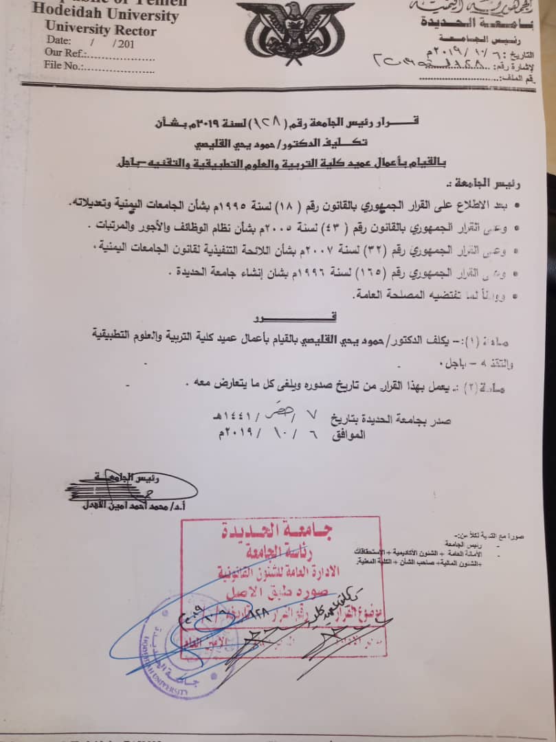 وتكليف الدكتور حميد الريمي بعمادة الكلية إلا إنه لم يستطيع هو الاخر استعادة ملفات ووثائق الطلاب وأطلق مناشدات للمواطنين للتدخل لحماية مستقبل أبناءهم.