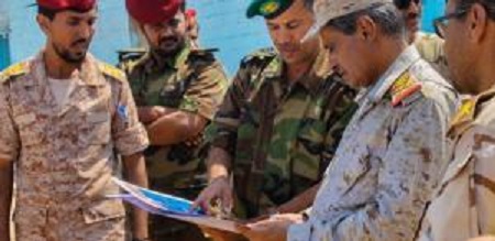 رافقه خلال الزيارة رئيس عمليات المنطقة العميد فيصل بادبيس وقائد لواء الأحقاف العميد عوض الحيقي وقائد قوات خفر السواحل المقدم سالم النموري وعدد من القيادات العسكرية.