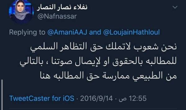 يشار الى ان التغريدات المتداولة المسيئة للمملكة اغلبها في عام 2016، كما يذكر ان نفلاء نصار النصار كانت ناشطة على تويتر، ولكن حسابها التي تم تداول التغريدات المسيئة منه غير موجود الان.