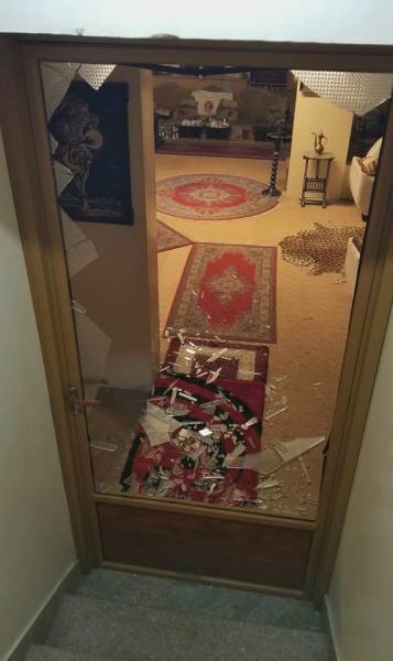 وحين خرجت من البيت رأيت الباب الحديدي الخارجي الضخم مطروحاً على الأرض بعد اقتحامه بمدرعة!