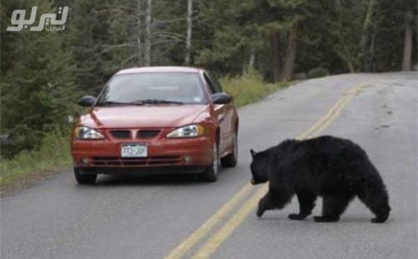 في مدينة خاباروفسك في أقصى الشرق الروسي فؤجئ احد سائقي السيارات اثناء قيادته ليلاً بانثى دب ترمي بنفسها على سيارته لحماية ابنها اثناء عبوره الطريق ..