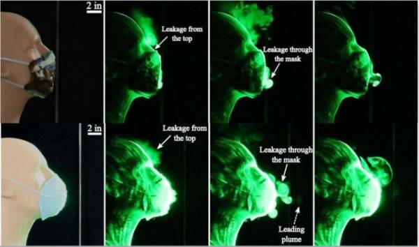 حيث وكشف التصوير أنه من دون قناع، يمكن للقطرات التي يتم إنتاجها أثناء السعال أن تنتقل حتى 3.7 متر، ولكن باستخدام القناع، تنخفض المسافة إلى بضع سنتيمترات فقط في أفضل الحالات.