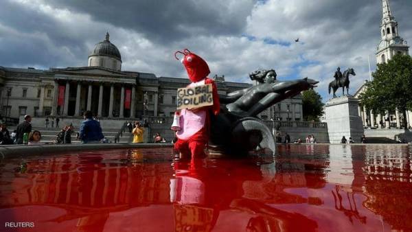 تفاجأ سكان العاصمة البريطانية لندن، بـ”دماء” تنهمر من نافورة “الطرف الأغر”، وهي أحد أبرز معالم المدينة، بعد أن ألقى فيها مناصرون لحقوق الحيوان، طلاء باللون الأحمر.