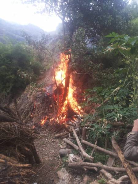 ونشر الأكاديمي عبدالله قحطان منشوران الليلة الماضية اشار الى ارتكاب عصابات تتبع المليشيا الحوثية جريمة الحرق السادسة عصر يوم امس الاثنين 13-6-2020 تمثلت في احراق قصب الذرة (الوجيم) بجانب منزله وتكسير اشجار البن والقات.