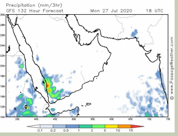 وقال خبير الطقس جميل الحاج على صفحته بالفيسبوك: “تحذير شديد جدا وهام جدا .. يرجى التعميم .. بإذن الله موجة أمطار شديدة الغزارة فوق المعدل الطبيعي ستشمل كامل سهول تهامة من سواحل غرب لحج وباب المندب والمرتفعات الغربية باليمن حتى جنوب غرب السعودية”.