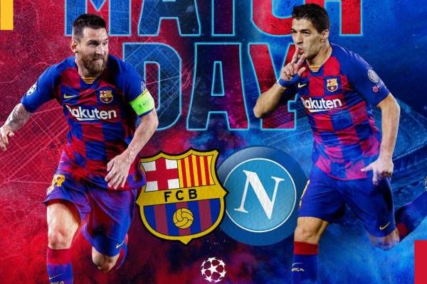 مباراة برشلونة ونابولي مؤجلة من تاريخ 18 مارس 2020، وستلعب اليوم على الكامب نو بدون جمهور بسبب فيروس كورونا، في موعدها بتمام الساعة العاشرة مساء بتوقيت مكة المكرمة التاسعة بتوقيت القاهرة. وتنقل المباراة حصرياً في بثها المباشر على قناة بي ان سبورت 1، بتعليق التونسي عصام الشوالي.