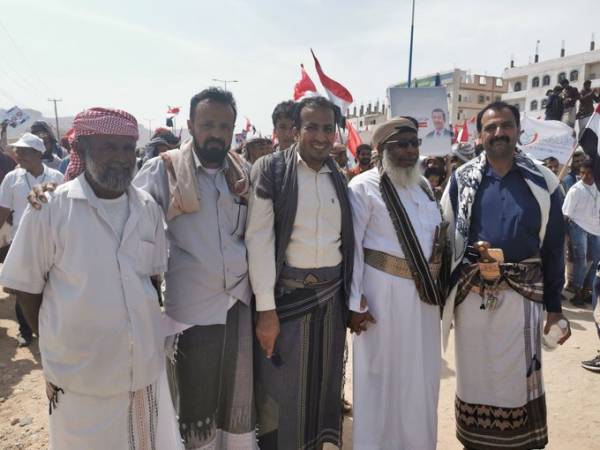 وقال الاحمدي معلقا على الفعالية: حضور مهيب ورسائل واضحة قالت الجماهير كلمتها وأعلنت الاصطفاف خلف الشرعية ودعم بناء مؤسسات الدولة ورفض مشاريع الفوضى والدفع نحو توحيد الجهد ضد انقلاب الحوثي..