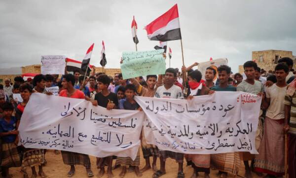 وطالب المحتشدون الذين رفعوا الأعلام الوطنية، وصور الرئيس هادي، والملك سلمان، وصور محافظ سقطرى رمزي محروس، طالبوا بعودة قيادة السلطة المحلية وبسط سيطرة الدولة الشرعية علي كافة المؤسسات المدنية والعسكرية والأمنية وإنهاء المظاهر المسلحة.