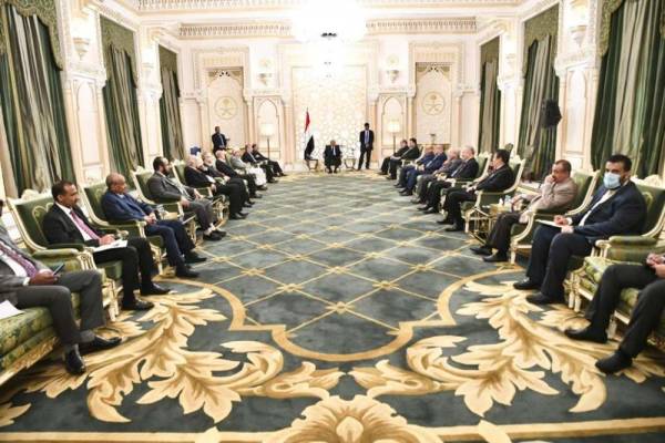 ووضع فخامة الرئيس الجميع خلال اللقاء امام المستجدات التي انبثقت عن لقاءاته ومشاوراته خلال الفترة المنصرمة ومنها لقاءه بالمبعوث الأممي مارتن غريفيت وتأكيده الدائم على السلام المرتكز على تنفيذ القرارات الاممية وفي مقدمتها القرار ٢٢١٦.