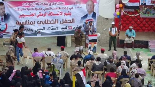 أقامت مدينة شقرة الساحلية بمحافظة أبين، برعاية الائتلاف الوطني الجنوبي، يوم الاثنين، حفلاً خطابياً وفنيًا بمناسبة العيد الـ53 للاستقلال الوطني “الثلاثين من نوفمبر”.