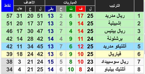 ترتيب مقدمة الدوري الأسباني بعد هذا الفوز اصبح كالتالي حيث يتصدر ريال مدريد الجدول بـ57 نقطة وبفارق 6 نقاط عن اشبيلية الذي تعثر بالتعادل اليوم مع اسبانيول.