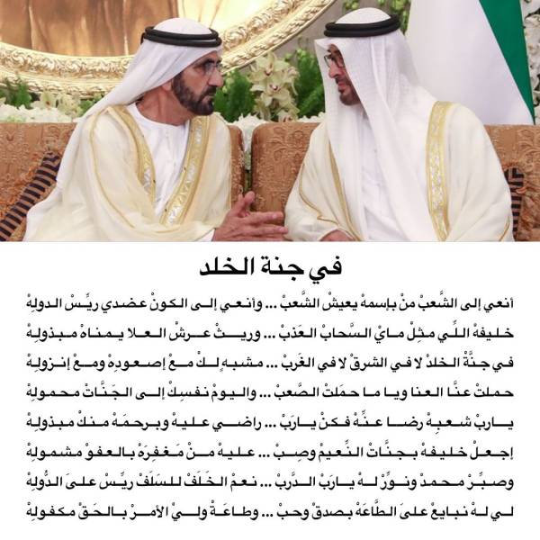 ونشر الشيخ محمد بن راشد آل مكتوم، قصيدة في رثاء الشيخ خليفة بن زايد آل نهيان.