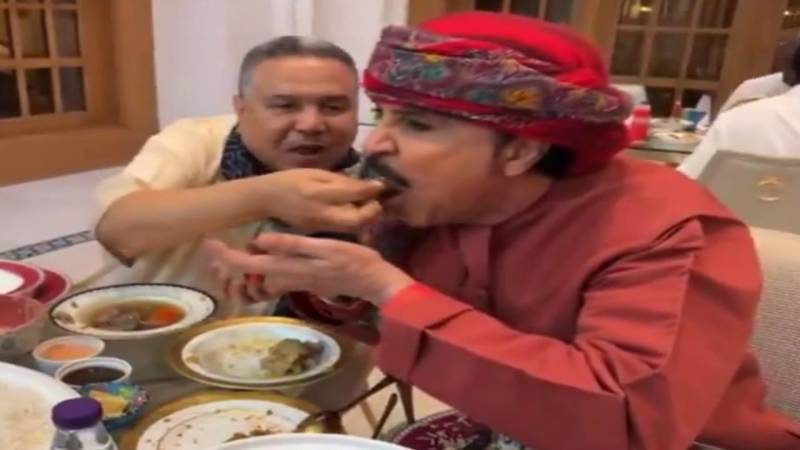 وأظهر الفيديو محمد عبده وهو يرحب بضيفه الفنان عبد الله بالخير على أرقى مستوى، حيث قام بإطعامه العسل بيده في لقطة مؤثرة عكست عمق العلاقة بين الفنانين.